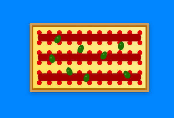 We're going to create a simple <detroit-pizza> element that can be configured with HTML attributes. The special feature? Our pizza starts as a plain cheese pizza, with three optional additions you can enable with attributes: